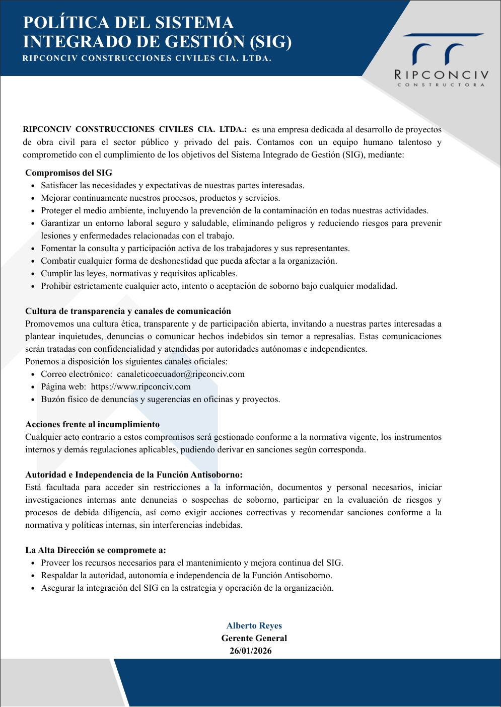 Compras y Atención a Proveedores Ecuador: +593 988470034 | cfigueroa@ripconciv.com compras@ripconciv.com